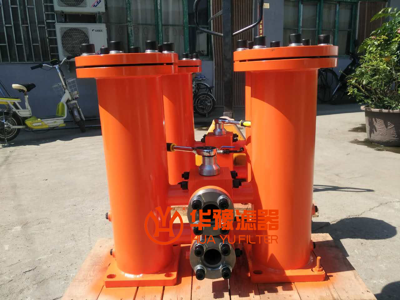 它的工作特點是當一只回油過濾器濾芯堵塞而需更換時,不必停止主機工作,只要打開壓力平衡閥并轉動換向閥,另一只過濾器可參加工作,然后更換已堵塞的濾芯。
